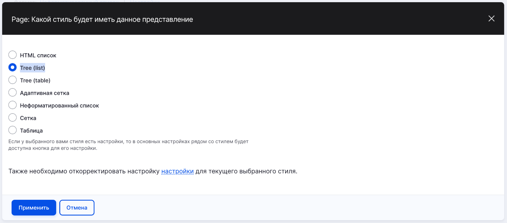 - В разделе настройки представления Формат выбираем Tree (list)