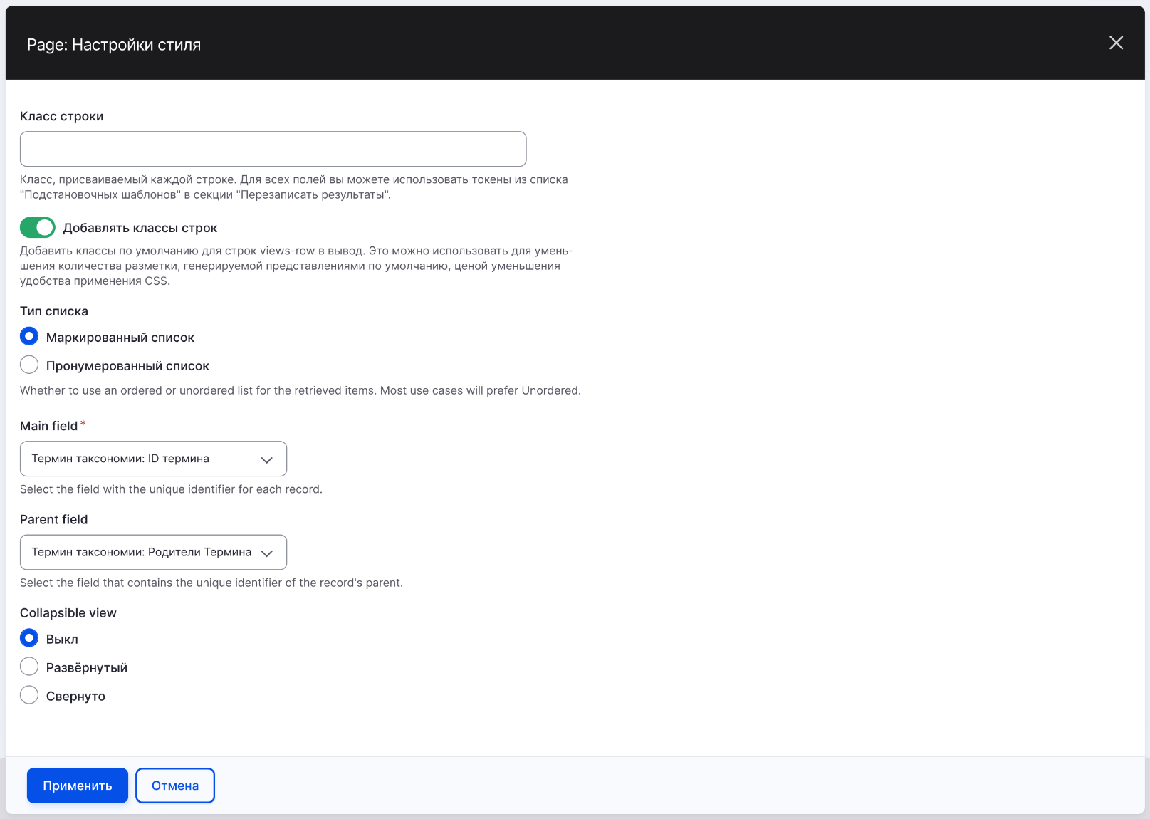 В настройке Main field выбираем поле с tid термина